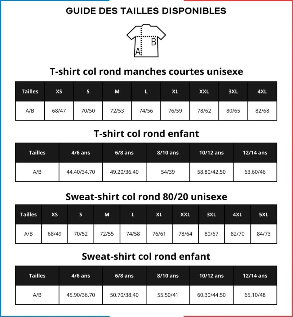 Pour plus d’informations, nous mettons à votre disposition les fiches techniques : T-shirt col rond manches courtes unisexe T-shirt col rond enfant Sweat-shirt col rond 80/20 unisexe Sweat-shirt col rond enfant