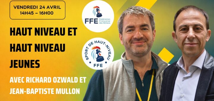 Mardi 21 avril de 14h45 à 16h30, Didier Pascal anime une réunion sur la formation fédérale, et le CQP animateur d’Échecs. La conférence aura lieu dans une salle dédiée, située dans le hall d’accueil.