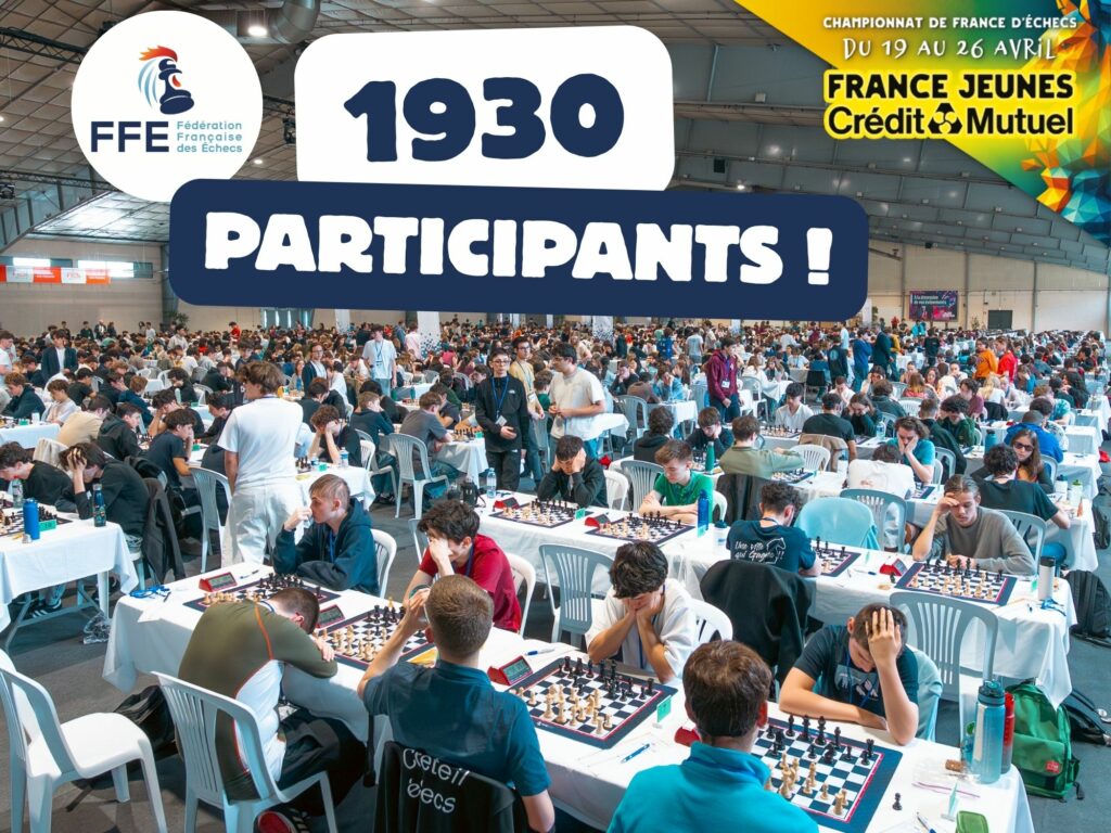 Avec 1930 participants, l’édition 2026 du Championnat de France Jeunes à Albi bat le record de participation ! Nous remercions les participant(e)s venus de toute la France et qui se sont mobilisés pour ce grand événement. Cette participation élevée témoigne de la popularité inédite des Échecs : cette saison encore, le nombre de licencié(e)s est en forte hausse, nous plaçant sur la trajectoire pour franchir le cap symbolique des 100 000. Le succès d’Albi 2026 confirme l’engouement pour notre sport !